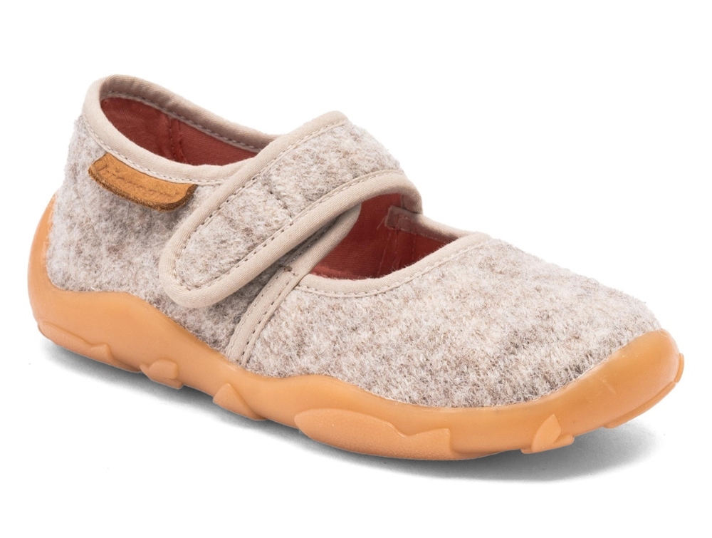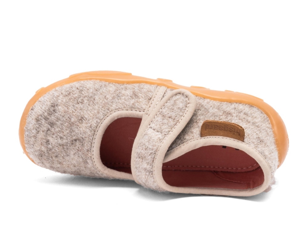 Bisgaard Maddy hjemmesko i sandfarvet uld med velcro