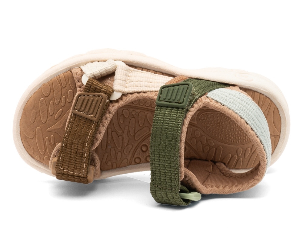 Bisgaard Nico sandal i grøn nuance er en let og sporty børnesandal med fleksible tekstilremme og blød neopren på indersiden. Sandalen har en åben konstruktion og justerbare velcrolukninger, som giver en stabil pasform til aktive sommerdage.