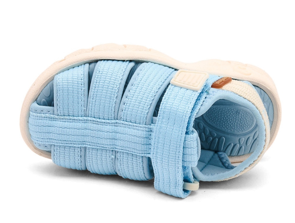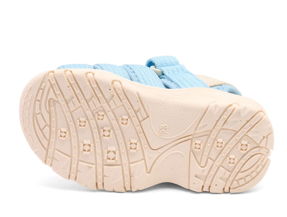Sandalen har en hurtigttørrende ydersål, som gør den ideel til leg ved vand, strand og sandkasse. Den lukkes nemt med justerbar velcro ved anklen og giver en blød, fjedrende komfort gennem den stødabsorberende sål.
