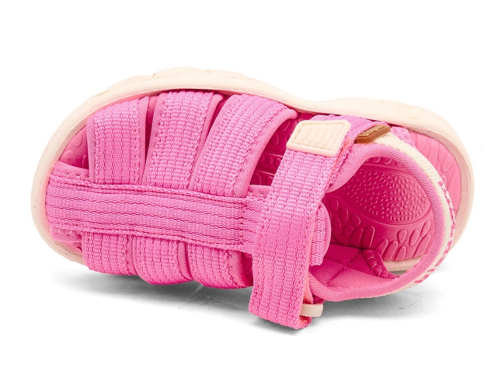 Lukket sandal i en pink nuance fra Bisgaard. Niki er fremstillet i tekstil med blødt neoprenfor og en let konstruktion, der gør modellen velegnet til aktive børn. Sandalen har lukket tå, åben hæl og justerbar velcrolukning omkring anklen.