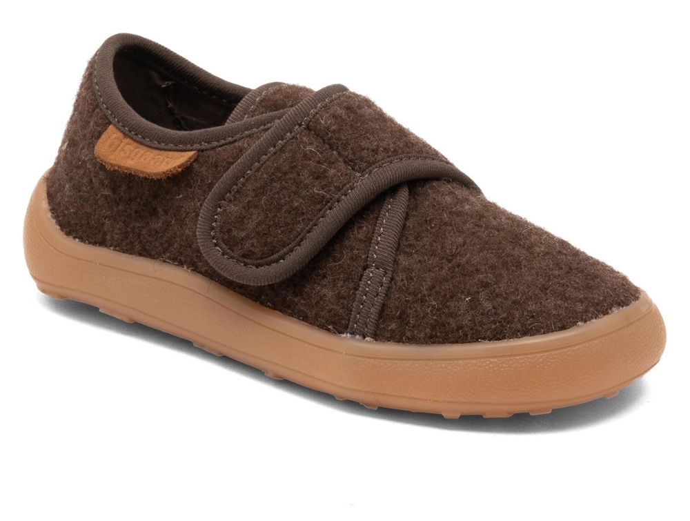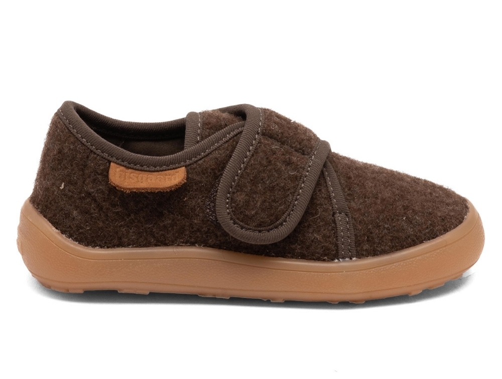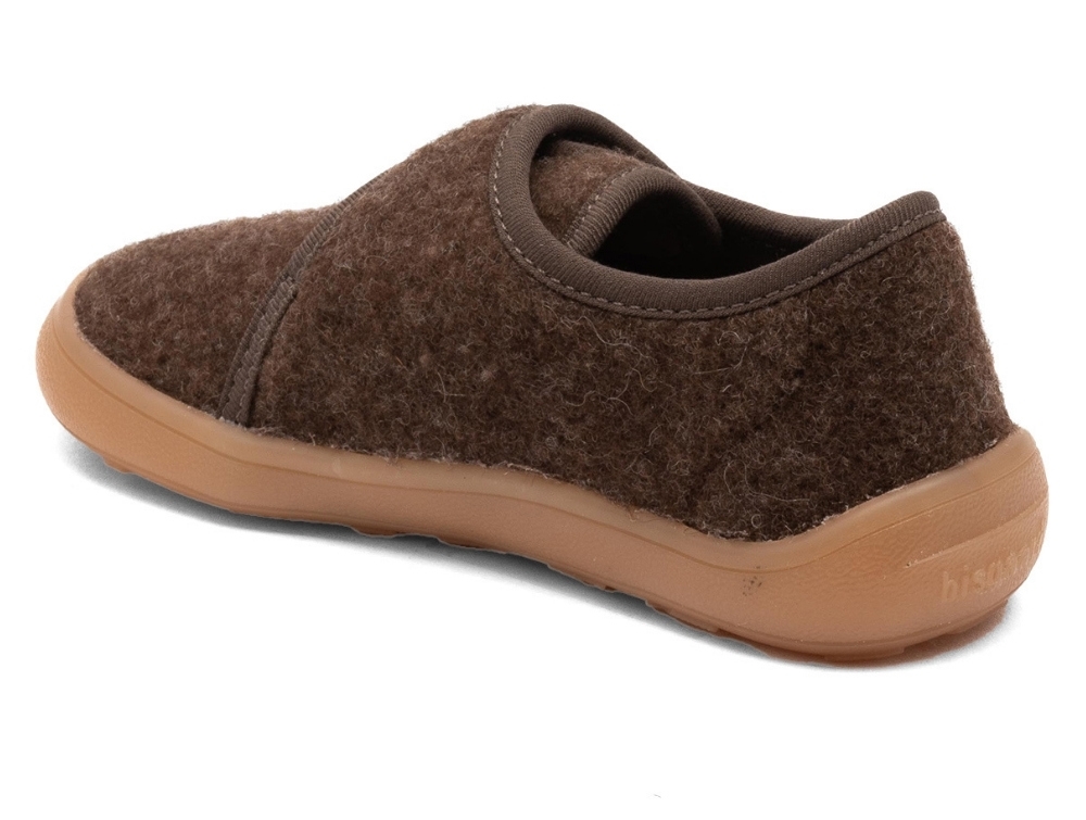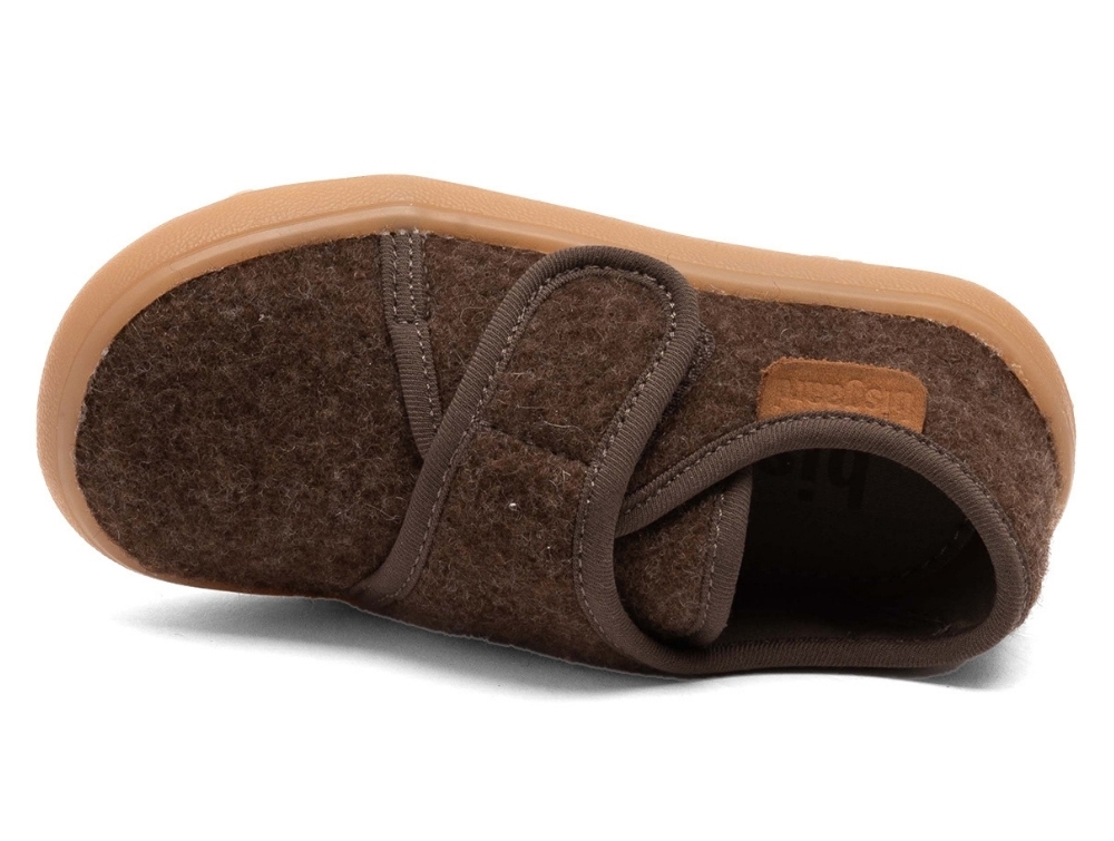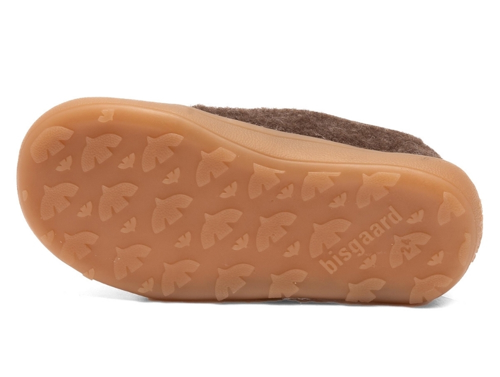 Bisgaard Pav hjemmesko brun uld med velcro og gummisål