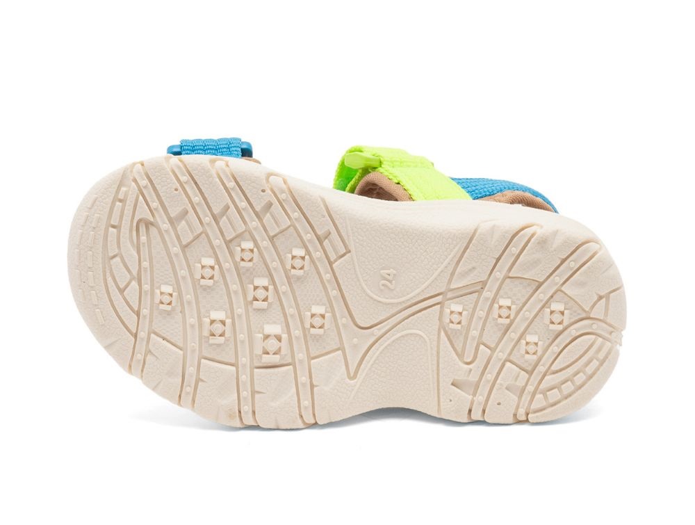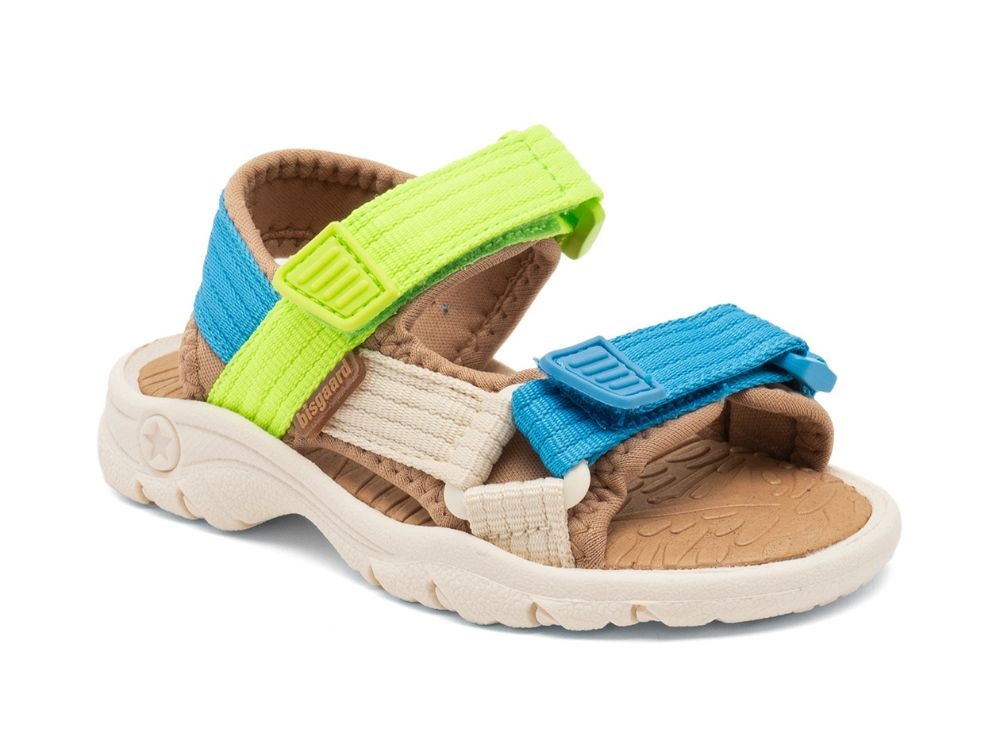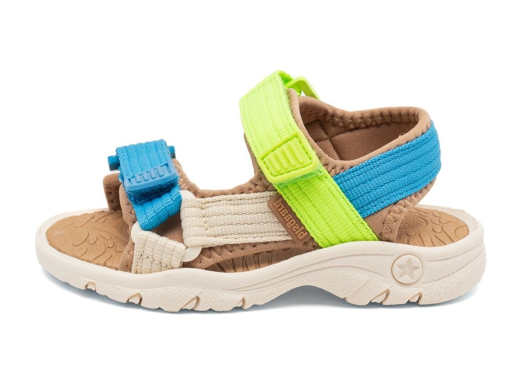 Let sporty sandal fra Bisgaard med multifarvede remme i blå og grøn tema.