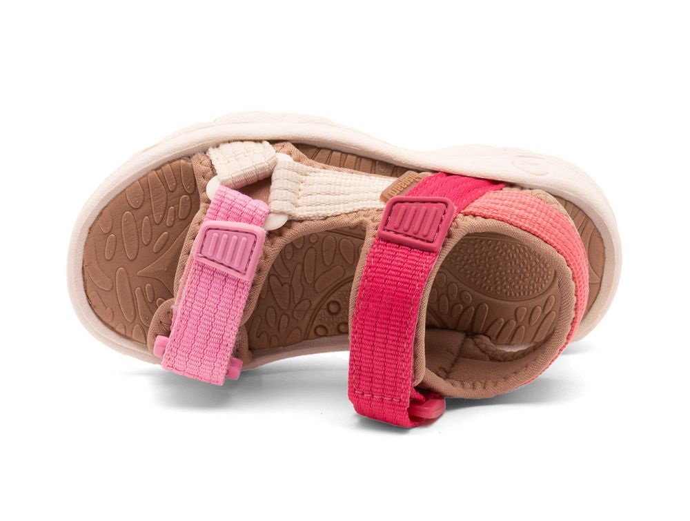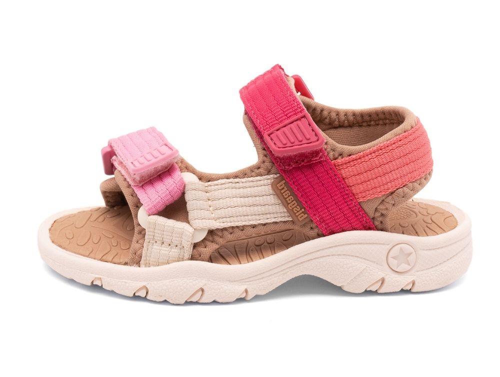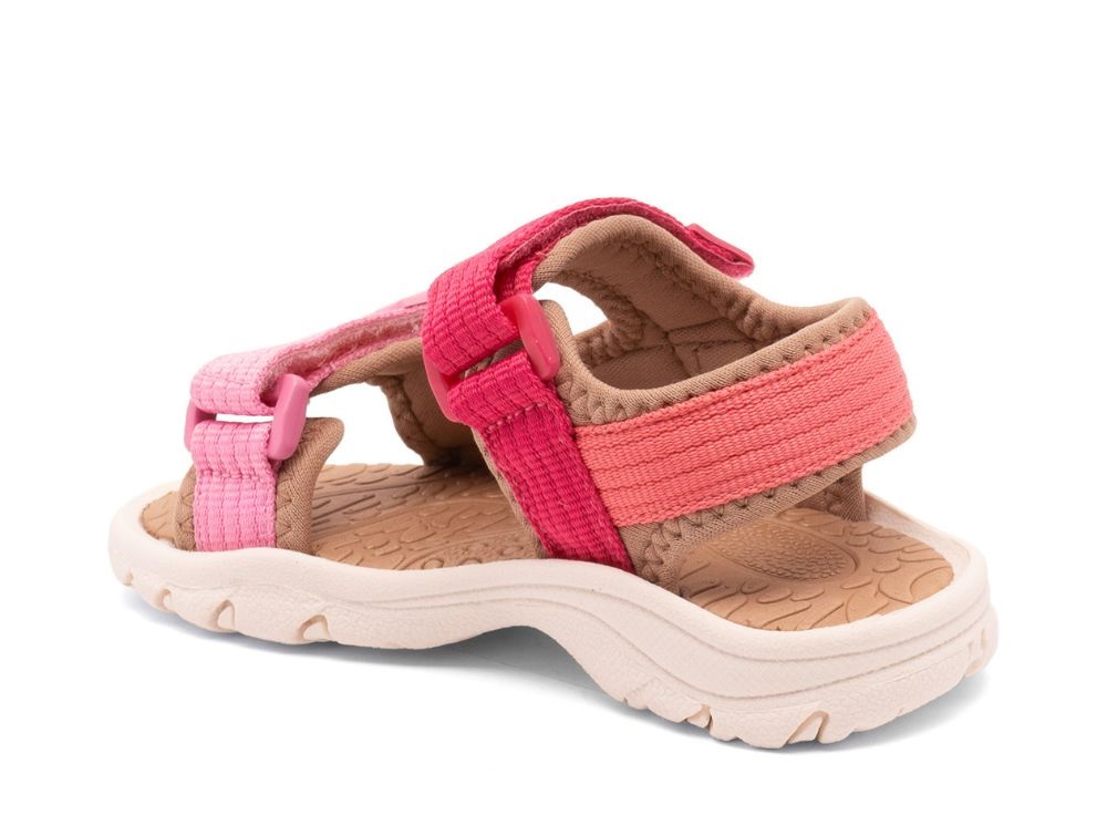 Let sporty sandal fra Bisgaard med multifarvede remme i pink (bubblegum) tema.