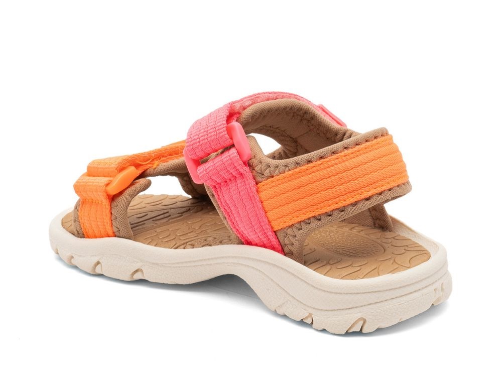 Let sporty sandal fra Bisgaard i neon pink, orange og råhvid.