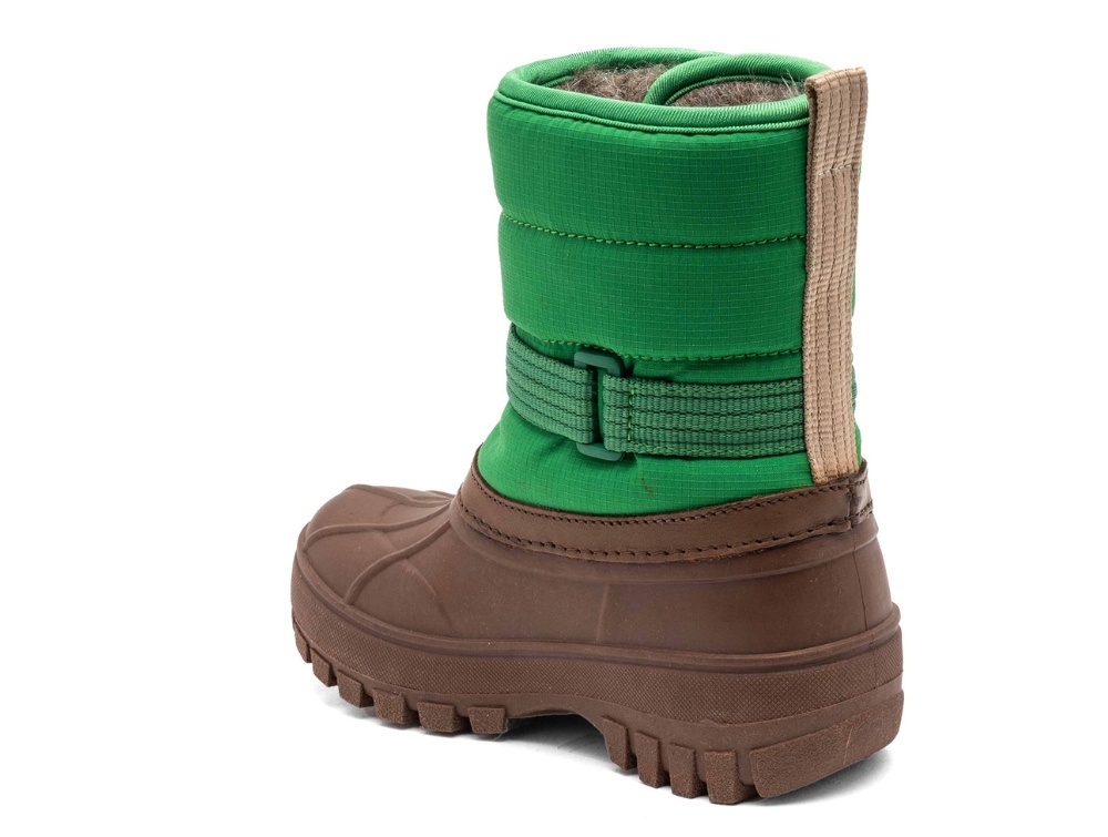 Bisgaard Pacson snestøvle i en frisk grøn farve, er en varm og praktisk vinterstøvle til børn. Den kombinerer grønt tekstil med en mat overflade og en solid brun TPR-ydersål, der giver klassisk snestøvle-look og pålidelig beskyttelse i vintervejr.