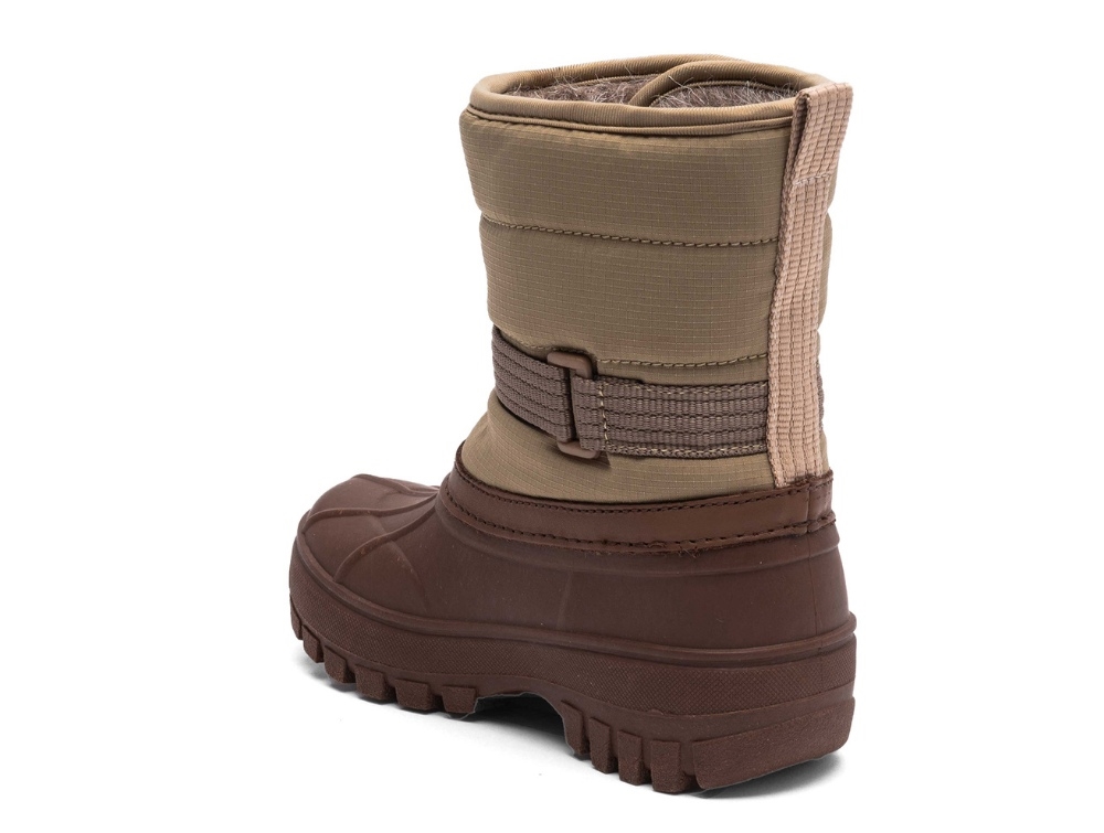 Bisgaard Pacson snestøvle i farven khaki er en varm og praktisk vinterstøvle til børn. Den kombinerer beige tekstil med en mat overflade og en solid brun TPR-ydersål, der giver klassisk snestøvle-look.