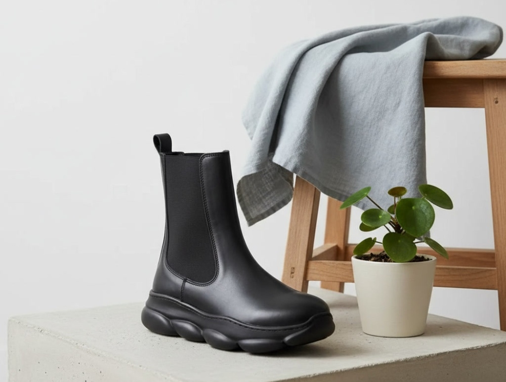 Sorte læderstøvletter fra Bisgaard med chunky sål.