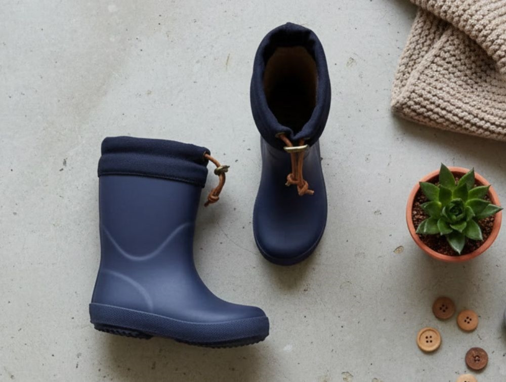 Mørkeblå vintergummistøvler fra Bisgaard med varmt foer. Gummistøvlen er 100% vandtæt og har et varmt lammeuldsfoer af 60% uld og 40% polyester.