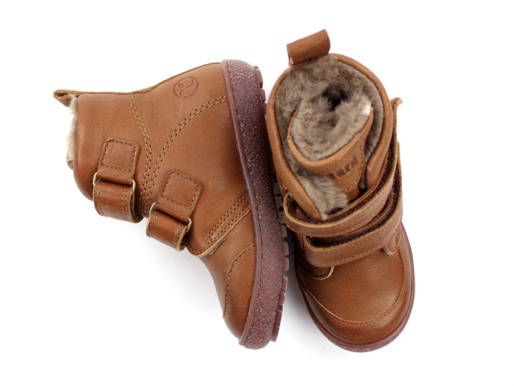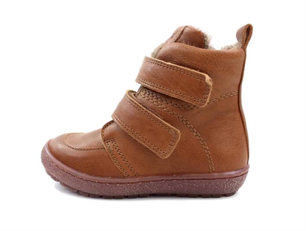 Tanfarvede vinterstøvler fra Bisgaard i læder med velcro.