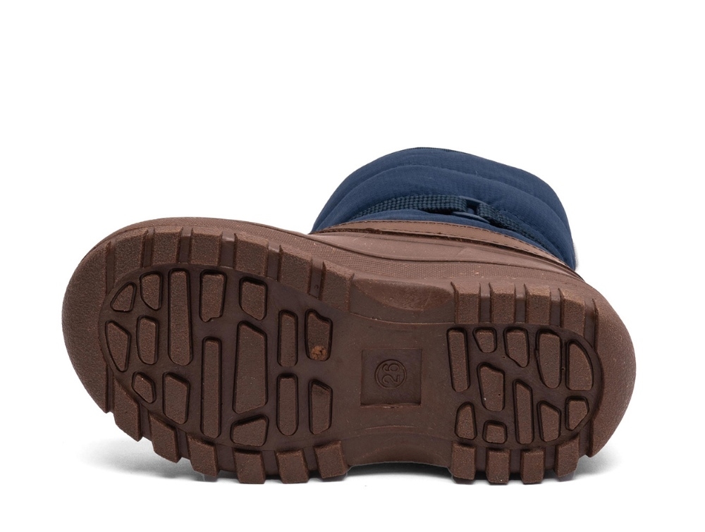 Bisgaard Pacson snestøvle navyblå er en varm og praktisk vinterstøvle til børn. Den kombinerer mørkeblåt tekstil med en mat overflade og en solid brun TPR-ydersål, der giver klassisk snestøvle-look og pålidelig beskyttelse i vintervejr.