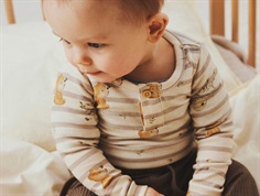 Hos MilkyWalk finder du et bredt udvalg af bodystockings til baby, der kombinerer bløde materialer, praktiske detaljer og søde designs. Uanset om du er på jagt efter en baby bodystocking i uld, en hvid bomuldsbody, en body med tryk, en body fra det populære Joha eller Mads Nørgaard, har vi noget for både nyfødte og større babyer – helt op til ca. 3 år.