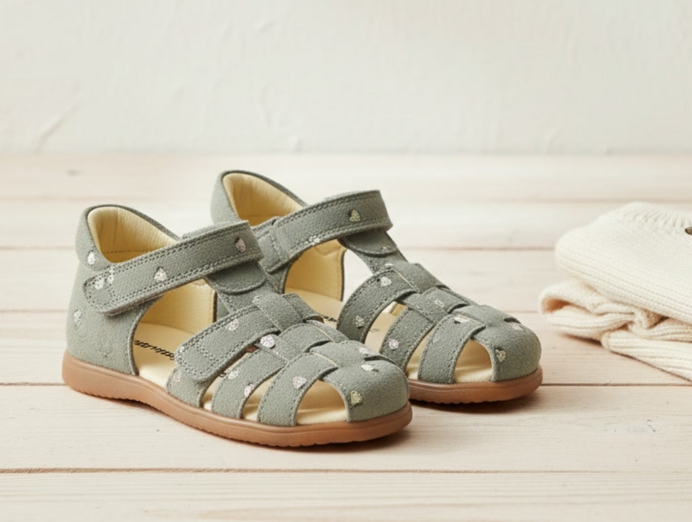Modellen er velegnet til medium og smalle fødder og lukkes nemt med justerbare velcroremme.