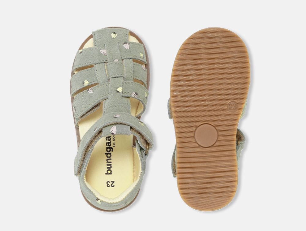 Bundgaard sandal i grøn med jordbær Bali styleBundgaard Bali sandal med jordbær hælkappeBundgaard Bali sandal med jordbær sål og front