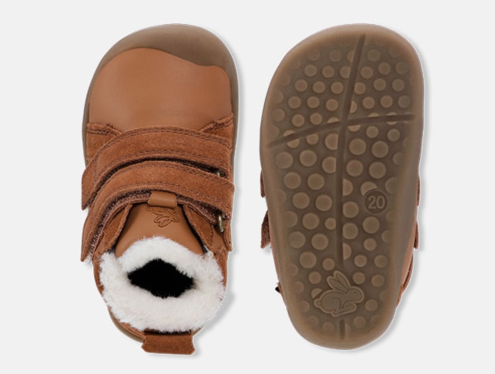 Bundgaard Bloom er vinterudgaven af den kendte begyndersko Petit og kommer her i en kombination af cognacfarvet læder og ruskind. Modellen er skabt med fokus på små børns fødder, hvor naturlig bevægelse og høj komfort er i centrum. Den brede front giver god plads til tæerne, mens en fast hælkappe sørger for stabilitet. Indvendigt er skoen foret med blød uld, som holder fødderne varme i kulden, og en vandafvisende TEX-membran beskytter mod fugt udefra.