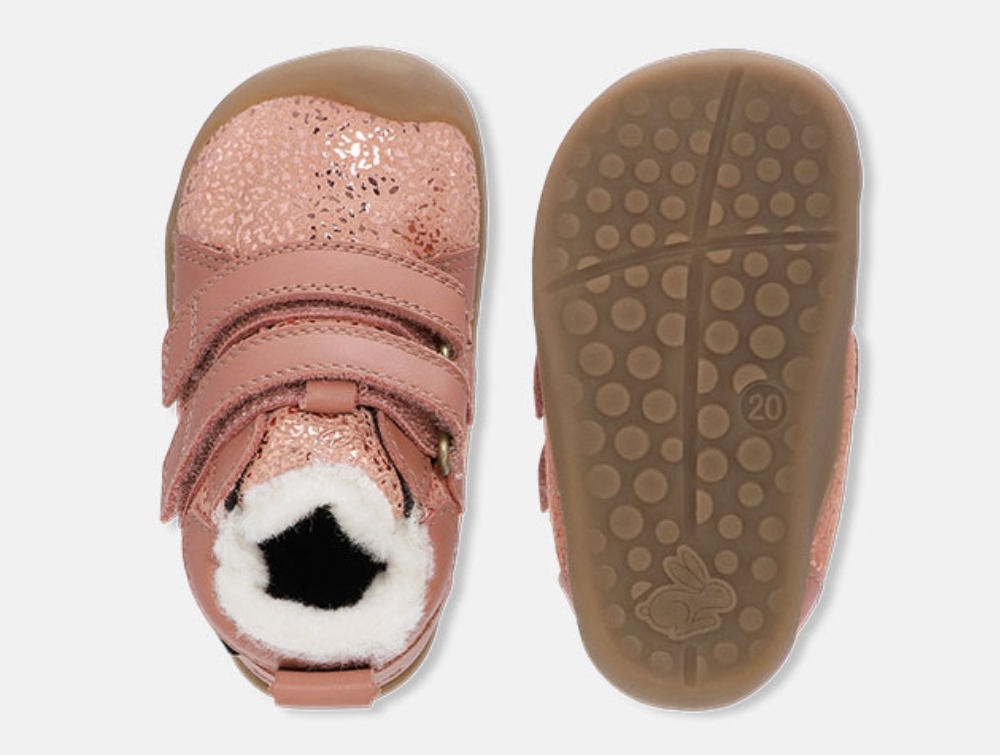 Bundgaard Bloom er vinterudgaven af den kendte begyndersko Petit og kommer her i en fin glitrende udgave i læder og ruskind. Modellen er skabt med fokus på små børns fødder, hvor naturlig bevægelse og høj komfort er i centrum. Den brede front giver god plads til tæerne, mens en fast hælkappe sørger for stabilitet. Indvendigt er skoen foret med blød uld, som holder fødderne varme i kulden, og en vandafvisende TEX-membran beskytter mod fugt udefra.