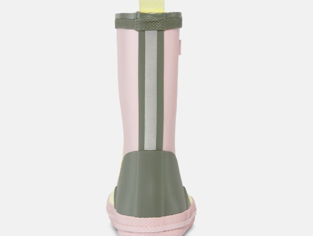 Multifarvede gummistøvler i gul (lemon), rosa og grøn fra Bundgaard med refleksstribe på hælen.