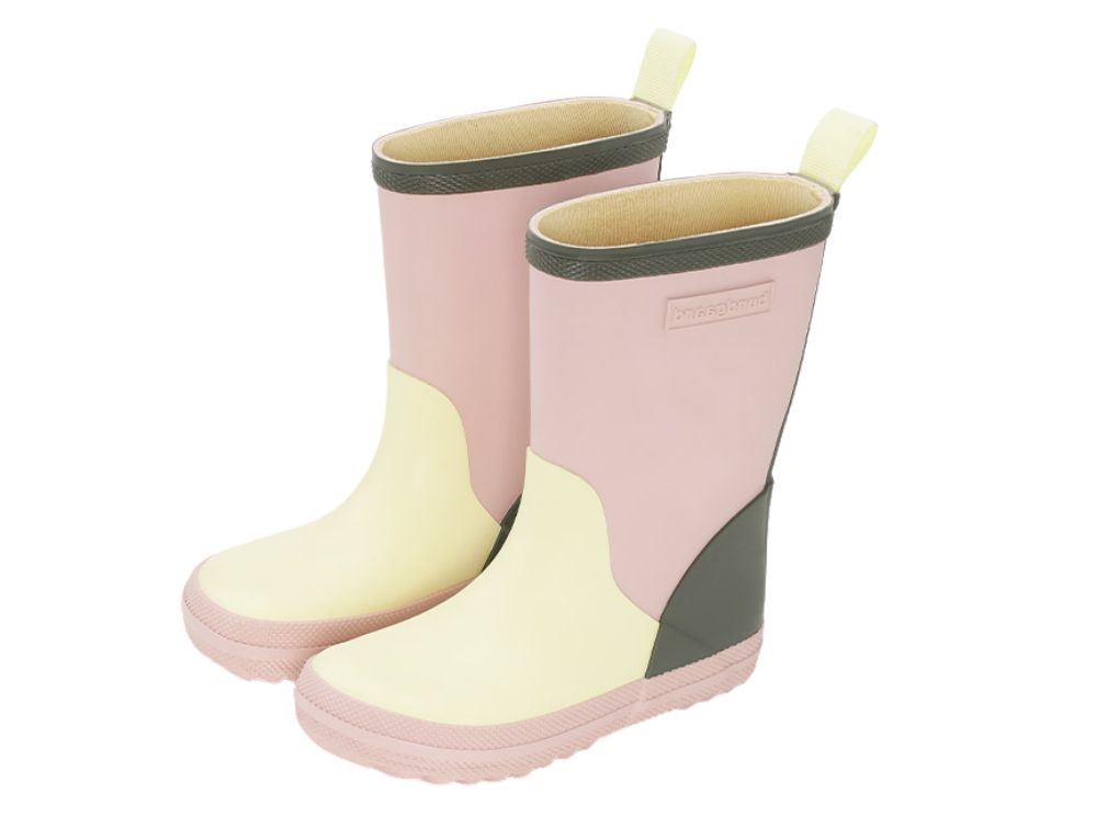 Multifarvede gummistøvler i gul (lemon), rosa og grøn fra Bundgaard med refleksstribe på hælen.