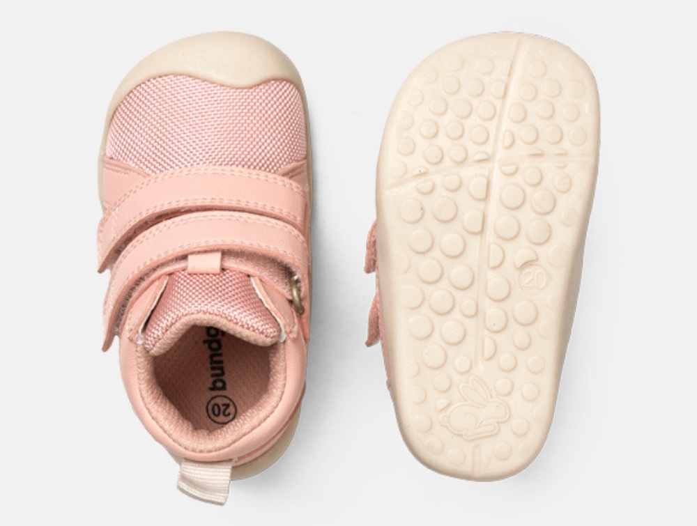 Sko i rosa (old rose) fra Bundgaard med dobbelt velcrolukning. Modellen hedder Mio og er en fleksibel, vegansk begyndersko designet til de mindste, men kan også sagtens bruges af børn, som går stabilt og har gået længe. Skoen har en sporty overdel i tekstil og mikrofiber kombineret med en elfenbensfarvet, fleksibel sål, der giver et let udtryk.