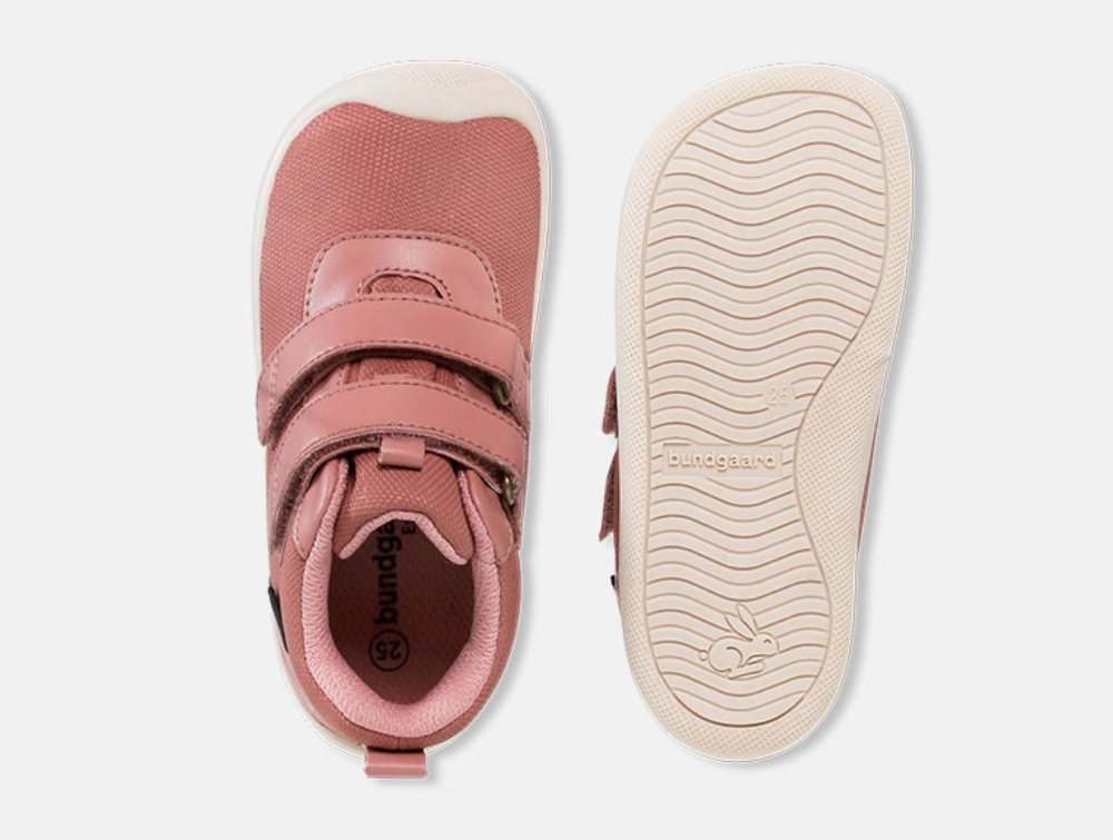 Sko i rosa (blush) fra Bundgaard med dobbelt velcrolukning. Modellen hedder Moon og er en let og fleksibel, vegansk sneaker til børn, der kan gå sikkert og har styr på balancen. Overdelen er i tekstil og mikrofiber kombineret med en elfenbensfarvet ydersål, som giver et sporty og frisk udtryk.