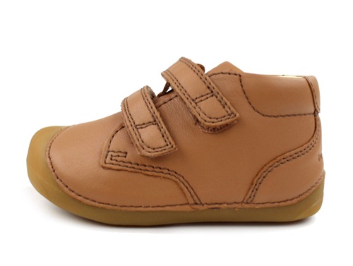 prewalker fra Bundgaard i cognacfarvet lædercognac prewalker med velcrolukning og gummisål