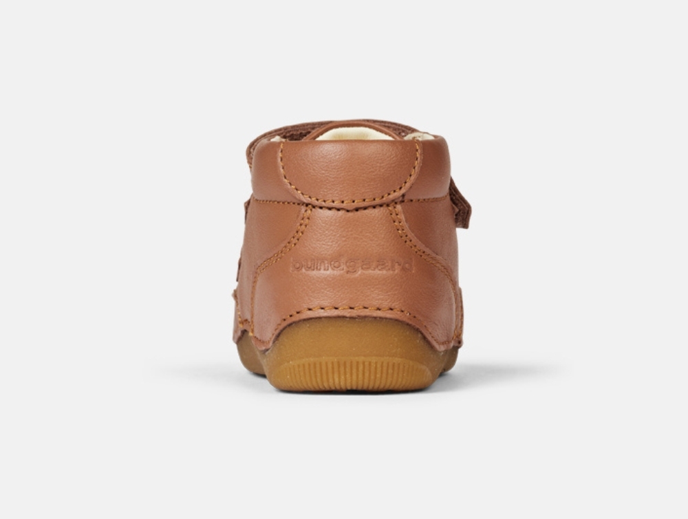 Prewalker i læder i farven cognac fra Bundgaard. Petit prewalkeren fra Bundgaard er en klassisk begyndersko designet til at give de mindste den bedste komfort, når de tager deres første skridt. Den er fremstillet i LWG-certificeret læder og har en blød, meget fleksibel gummisål. Indersålen er ligeledes blød og behagelig for små fødder.