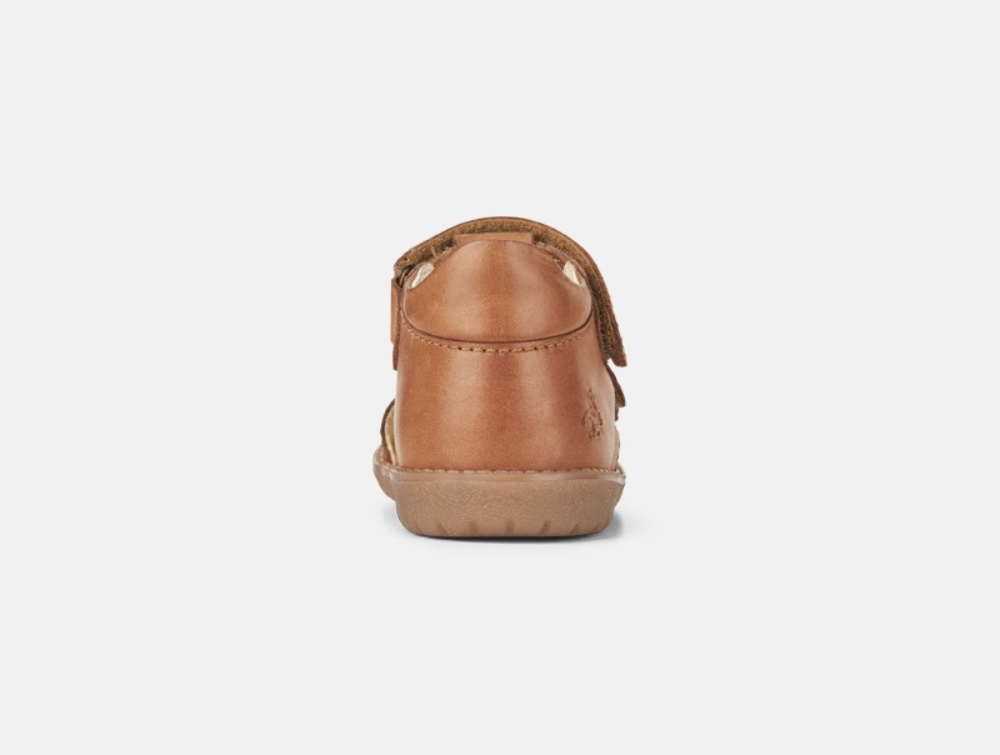 Sandal i cognac nuance fra Bundgaard i læder med lukket tå og justerbar velcrolukning. Modellen har et klassisk design, som giver god beskyttelse af tæerne.