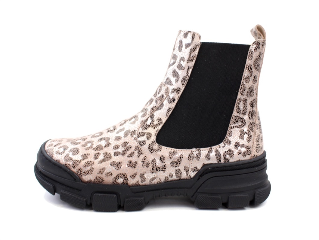 Elastikstøvle med rosa shiny leopardprint og med chunky sål fra Bundgaard.