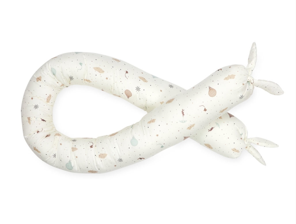 Den kan anvendes langs sengerammen i både baby- og juniorseng og fungerer også som en blød støtte eller krammepude. Sengeslangen er fremstillet i økologisk bomuld med polyesterfyld.