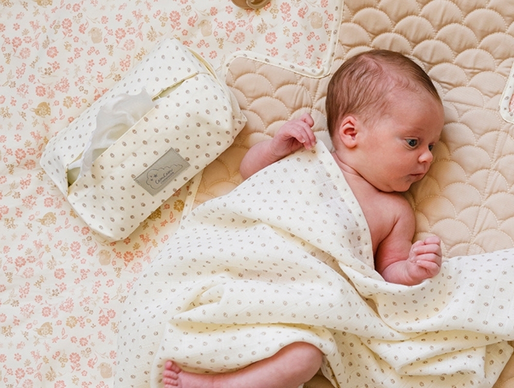 Et praktisk og dekorativt etui, der skjuler de originale pakker med vådservietter og skaber et mere roligt udtryk på puslebordet eller i pusletasken.