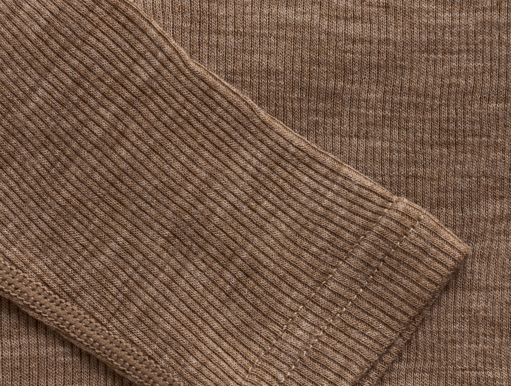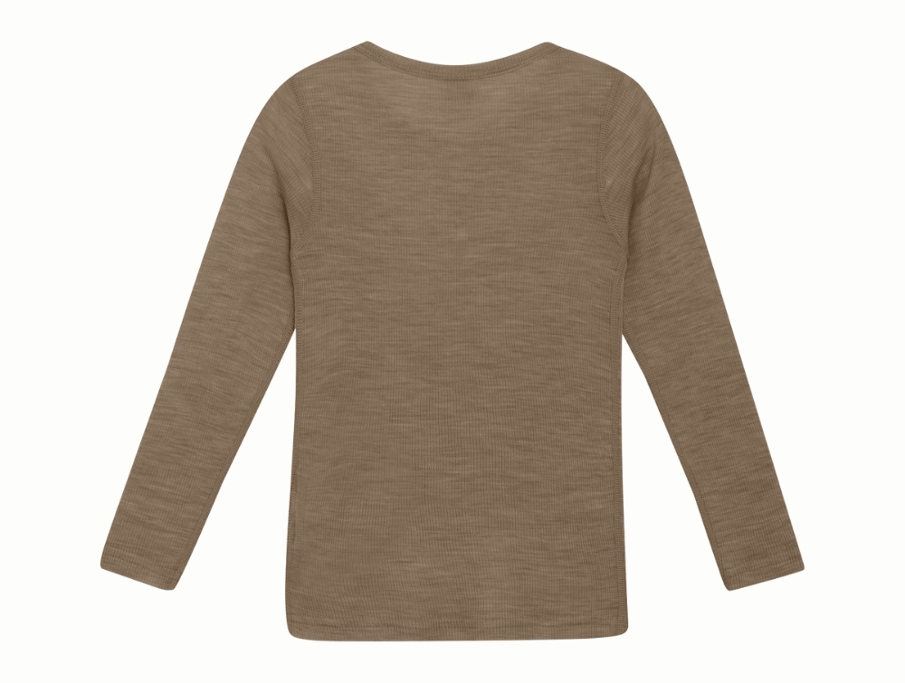 CeLaVi brun merinould bluse forfraCeLaVi brun merinould bluse rib detaljeCeLaVi brun merinould bluse bagfra