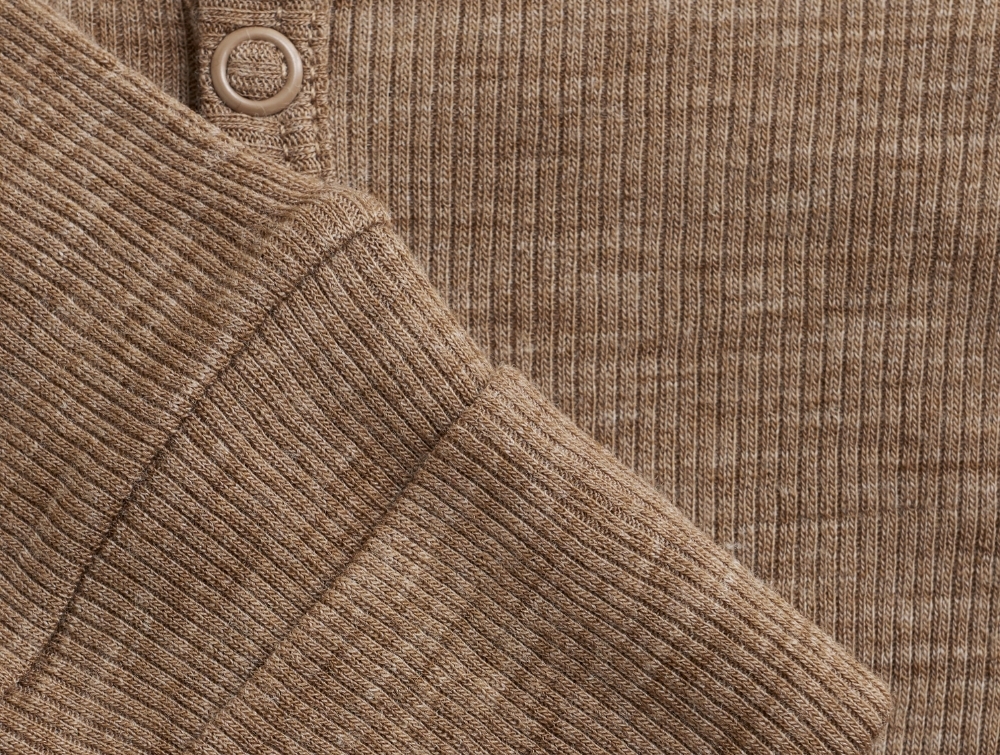 Ensfarvet langærmet heldragt i brun nuance (cocoa creme) fra CeLaVi, strikket i en blød 2x2 ribkvalitet i 100% merinould.