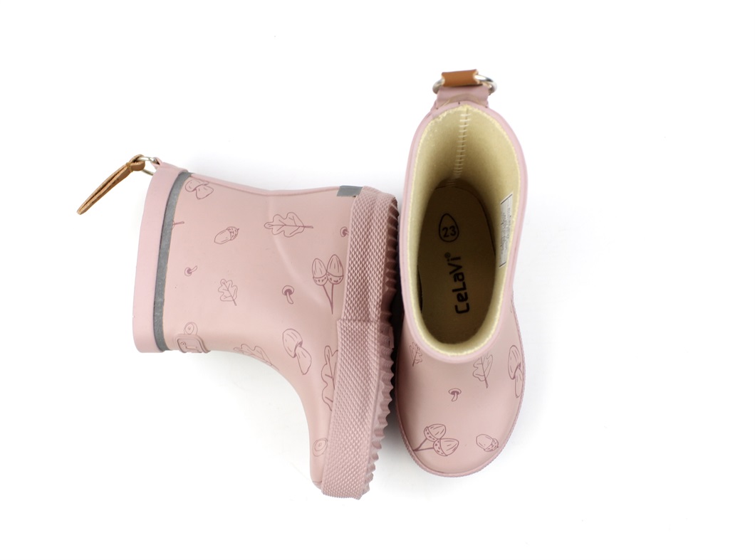 Korte gummistøver i farven misty rose med skovtema-print fra CeLaVi.