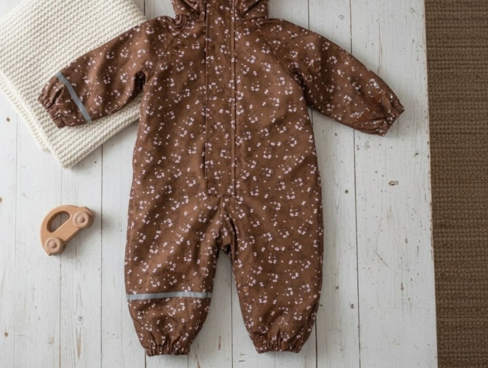 Regndragt i farven aztec (brun) med blomster-print fra CeLaVi.