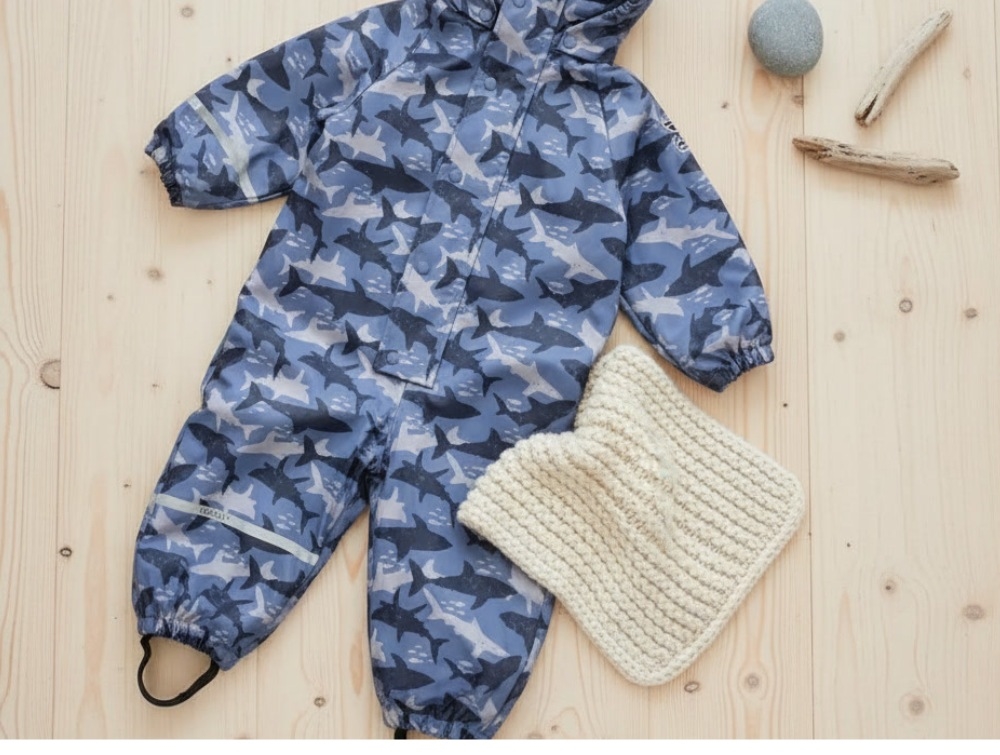 Mere information om CeLaVi regndragt blue sharks med fleecefoer