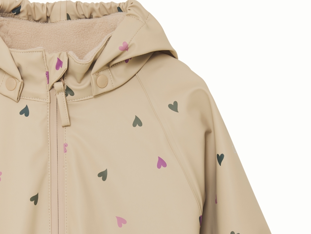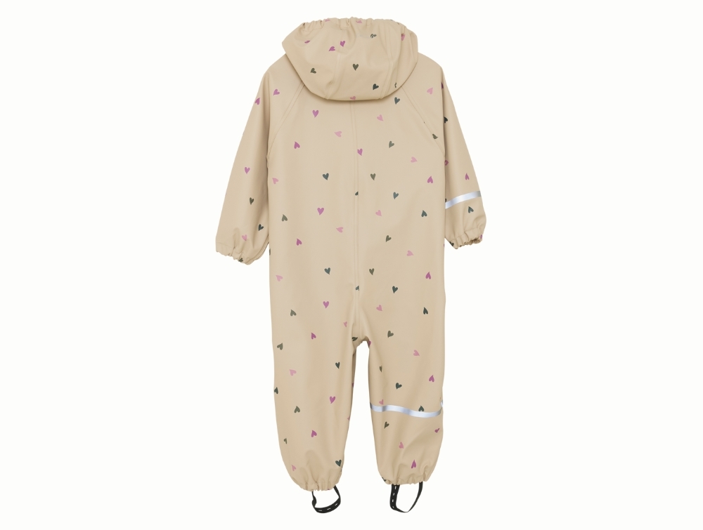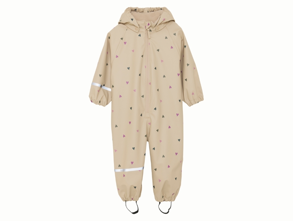 Regndragt i sand nuance (white pepper) fra CeLaVi med små hjerter.