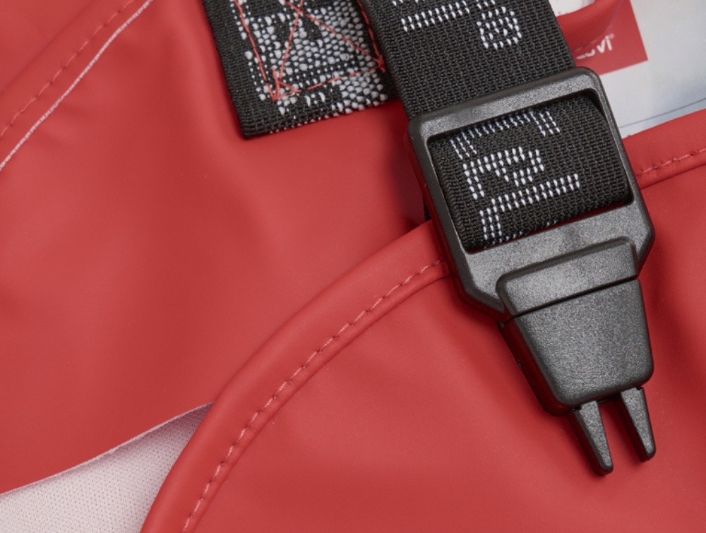 • Regnbukser med smæk og justerbare seler i str. 70-100