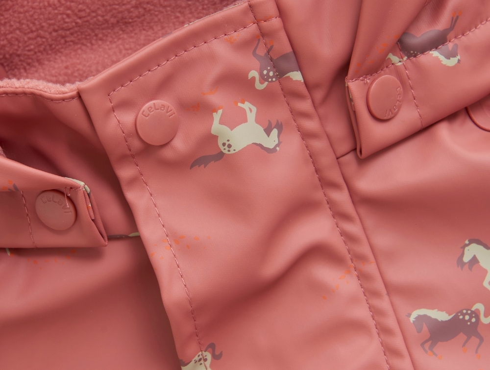 CeLaVi regnsæt i rosa nuance med fleecefoer, refleks og hestemønster