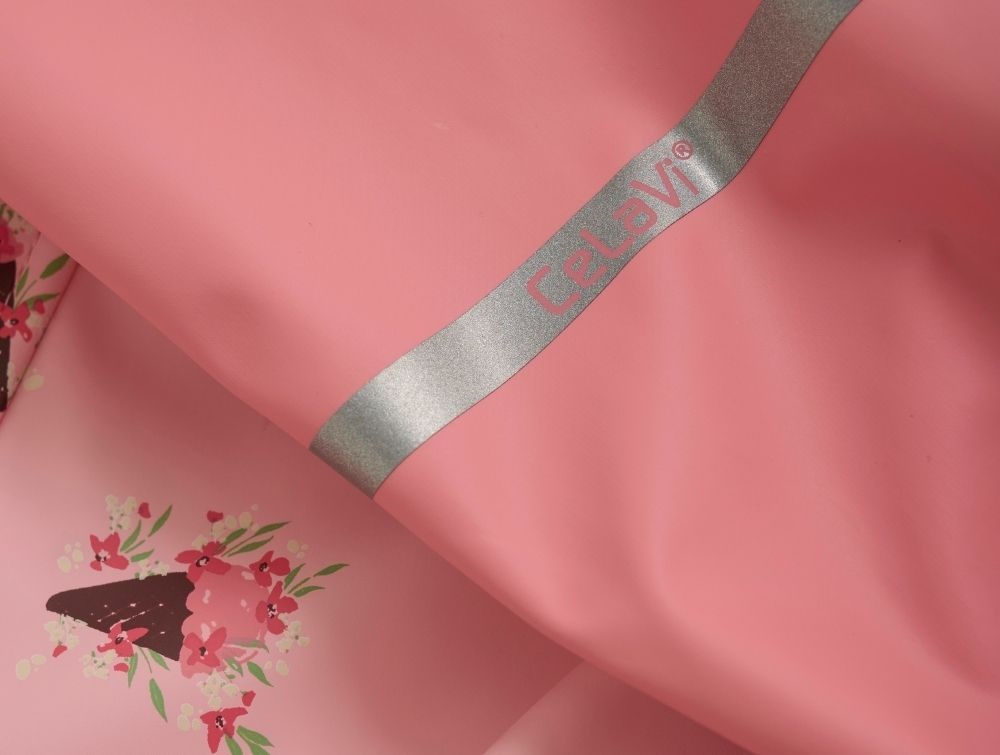 Mere information om CeLaVi regnsæt peach blossom med blomster og refleksdetaljer