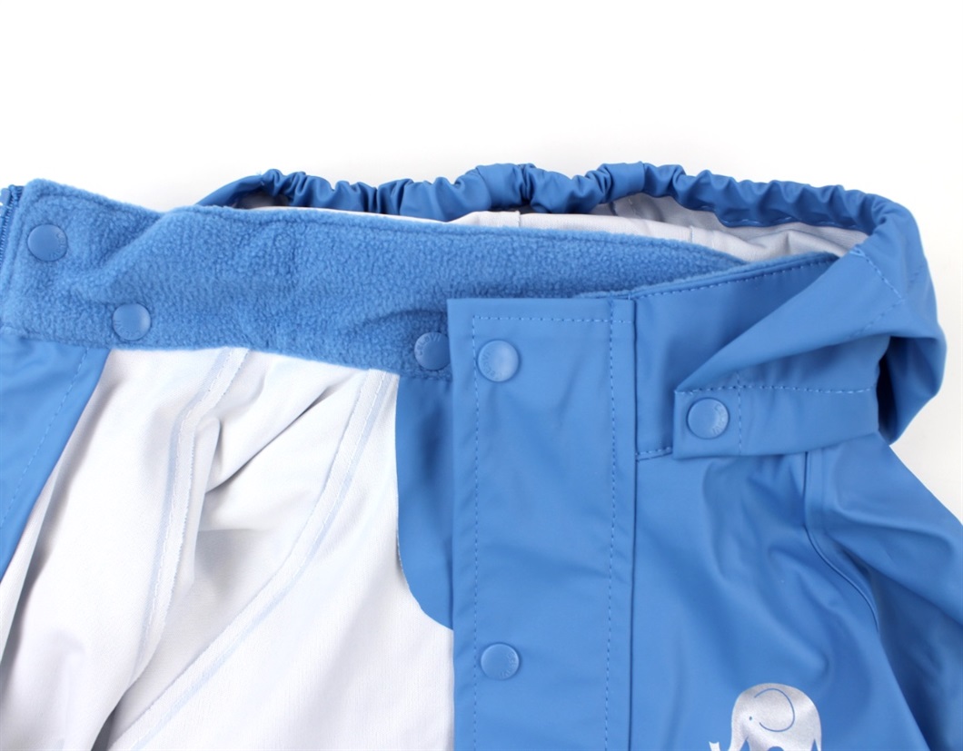 Regntøjssæt i blå med bukser og jakke fra CeLaVi. Regnsættet har et vandsøjletryk på 5000 mm.