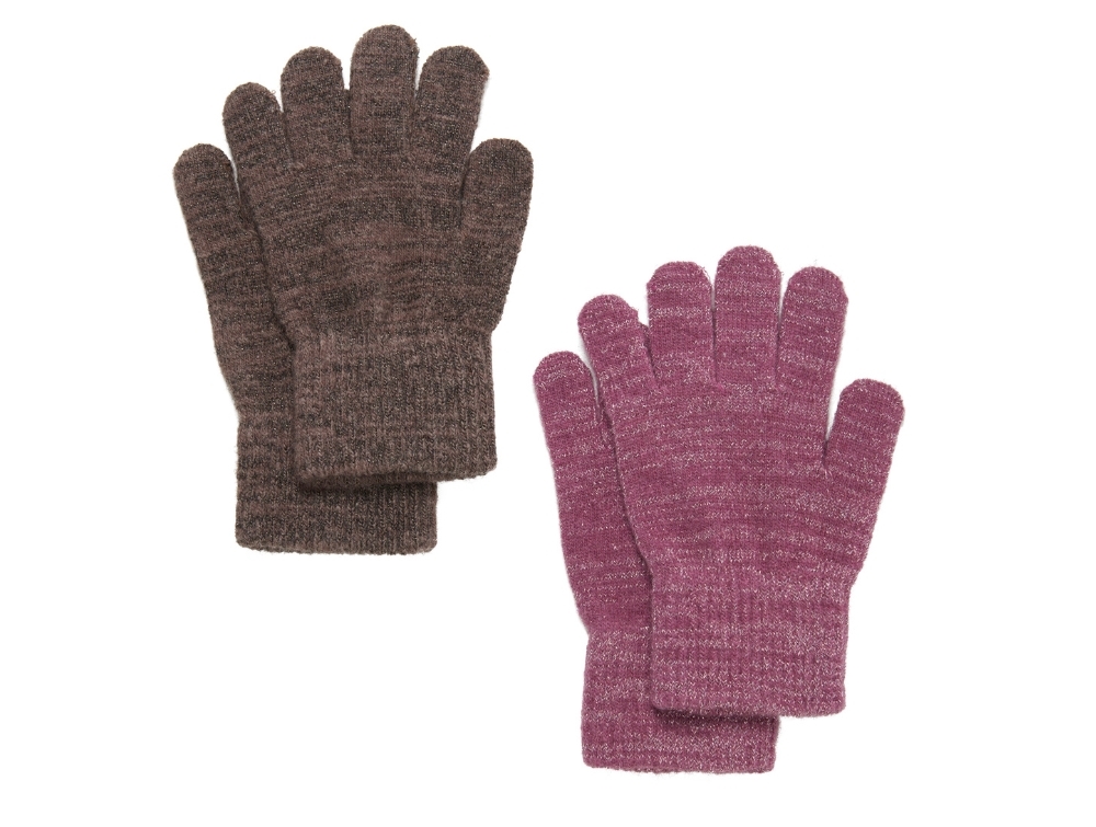 2-pak CeLaVi magic glitter handsker i brun og rosa nuance med glimmereffekt. Handskerne har en tæt pasform med ribkant ved håndleddene, som hjælper med at holde dem på plads. Begge par har tommelfinger og er ensfarvede med diskret glitter.