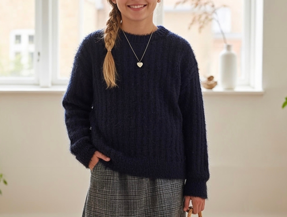 Sort pullover i fluffy strik fra Creamie.
