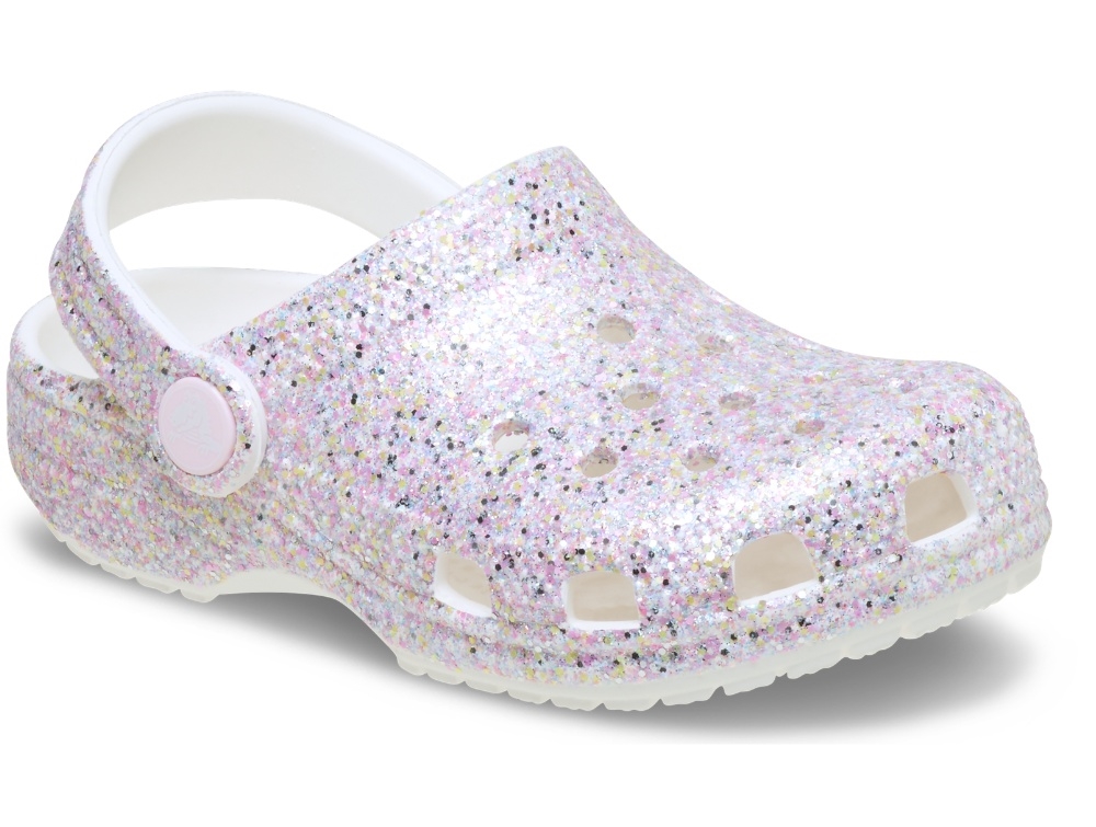 Crocs Classic clog med fantasy glitter er en let og fleksibel sandal til børn. Overfladen har et tæt lag af glimmer i flere farver, som giver et skinnende og iøjnefaldende udtryk.