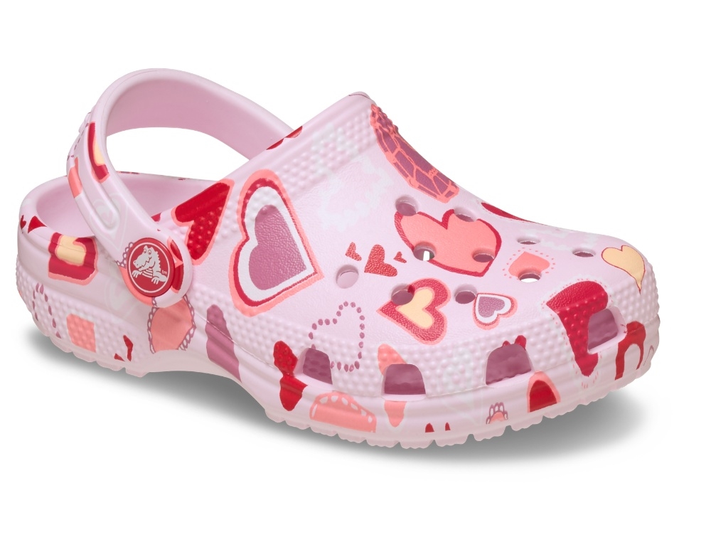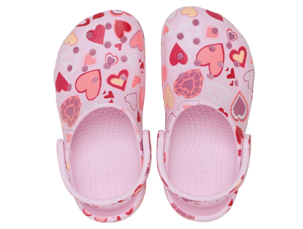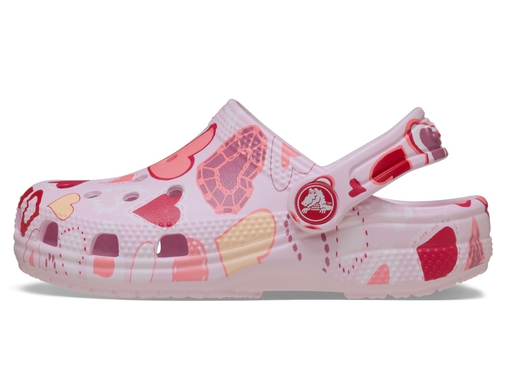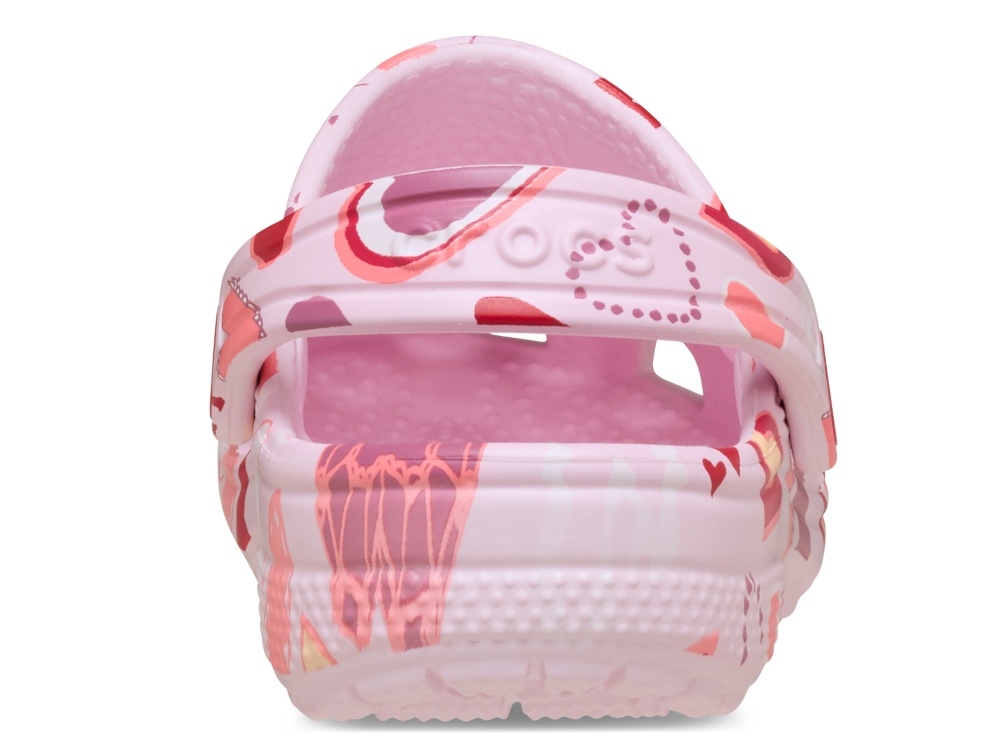 Crocs Classic clog i lyserød med hjerteprint og justerbar hælrem