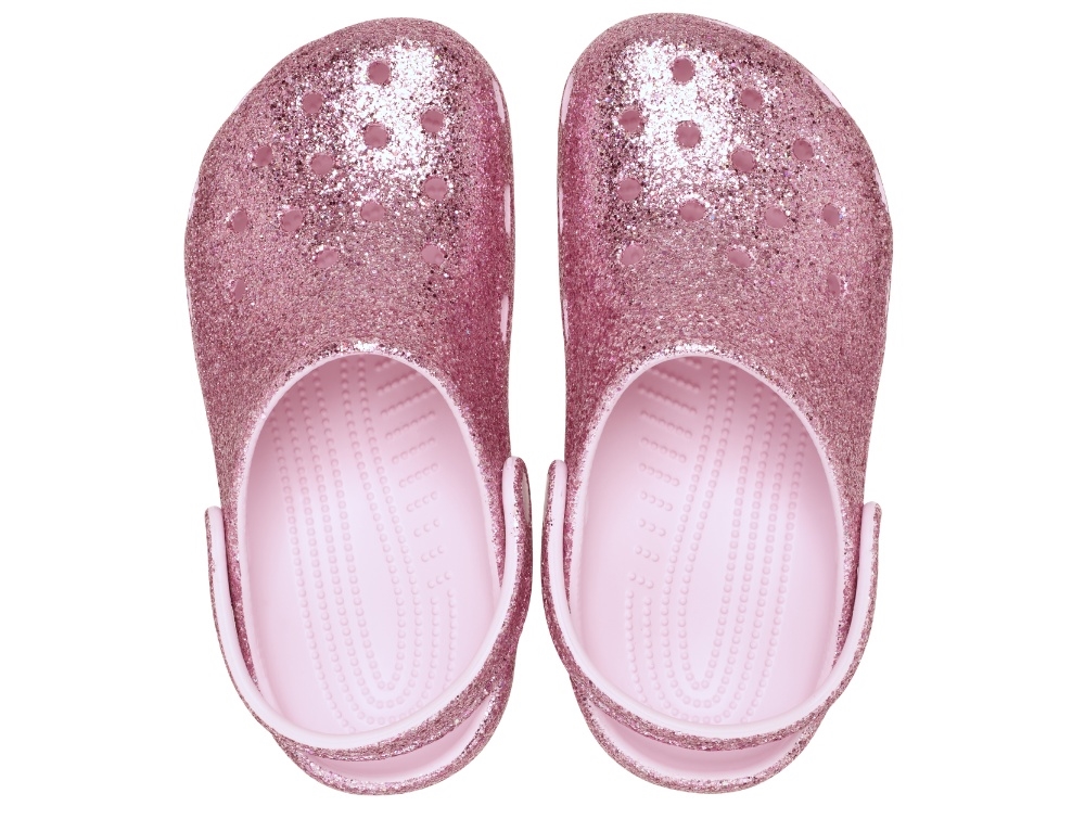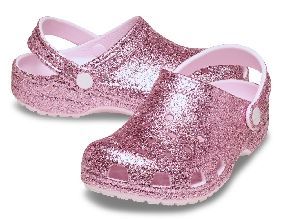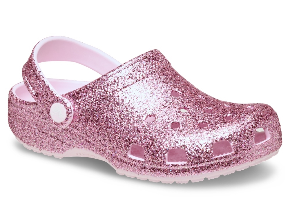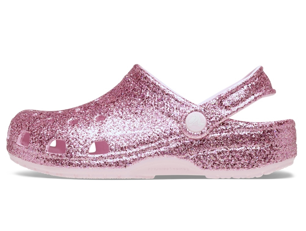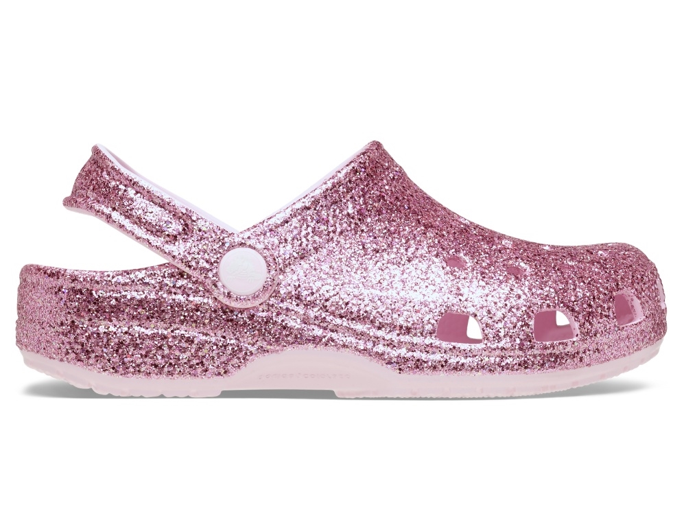 Crocs Classic clog i pink med chunky glitter og justerbar hælrem