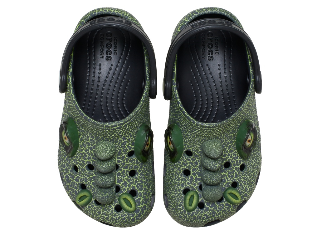 Crocs Classic Dino clog grøn med detaljer og hælrem