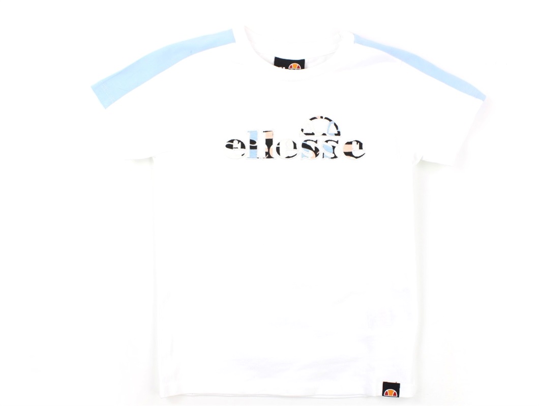 Hvid t-shirt med lyseblå striber på ærmerne fra Ellesse.