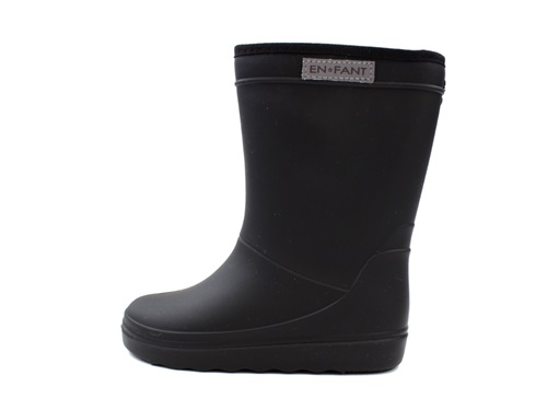 En Fant sorte termo gummistøvler med uldfoer set fra sidenEn Fant sorte termo gummistøvler med uldfoer set nedefra og fra sidenEn Fant sorte termo gummistøvler med uldfoer set fra siden