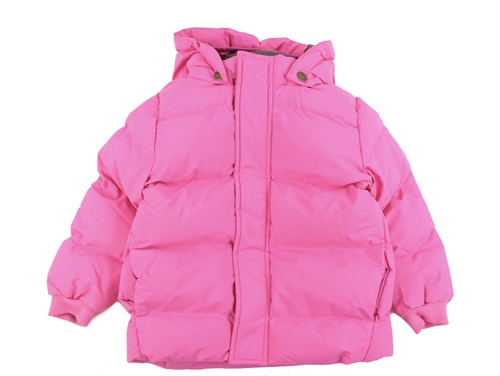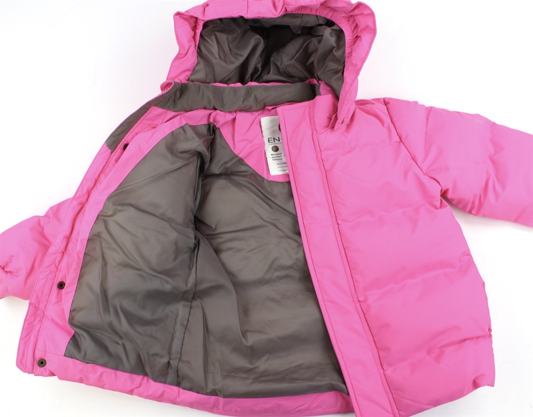 Vinterjakke i farven carmine rose fra En Fant. Vinterjakken har en aftagelig hætte med trykknapper.