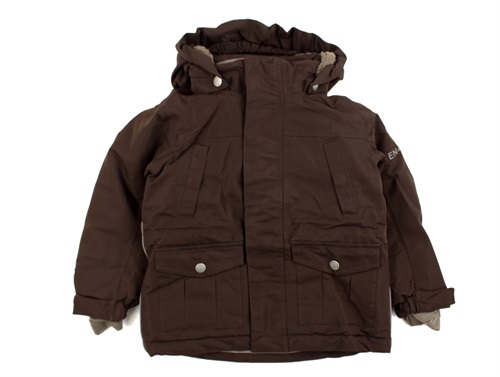 Vinterjakke i farven coffee bean med aftagelig hætte med trykknapper fra En Fant.
