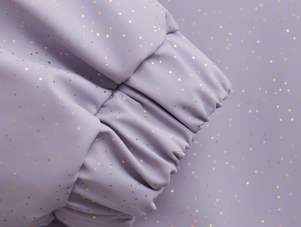 En Fant flyverdragt i lys lilla med glimmer og svejsede sømme